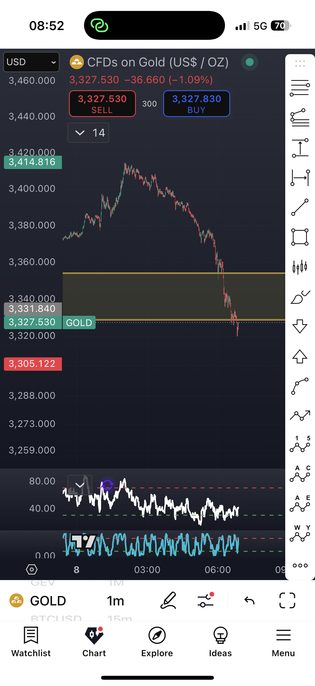 - Open your TradingView chart and load XAU/USD on the 1-minute timeframe.