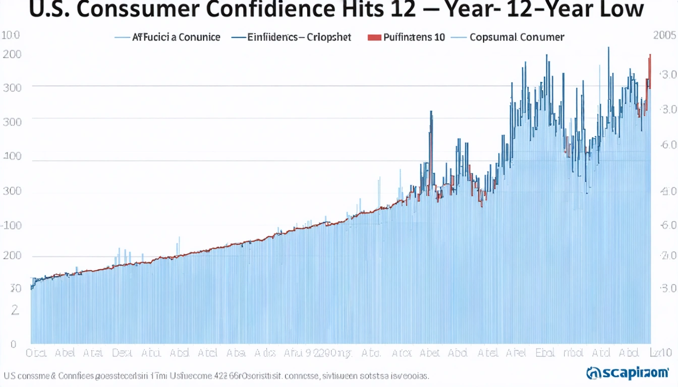 The Conference Board reported a significant drop in U.S. consumer confidence, marking the lowest level in 12 years. This decline reflects growing consumer concerns about economic stability and personal financial situations. Source